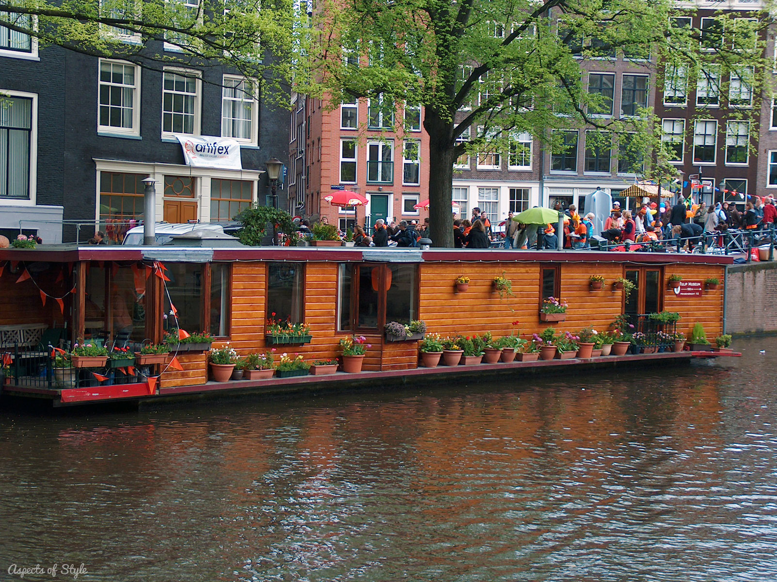 I happened to visit Amsterdam in 2008 while the Queen’s Day (now King’s Day since King Willem-Alexander was crowned last year) and that was an experience. Although on the actual day we visited the Museums (they were open) and strolled around the city, we made sure to blend in with the crowd. You see on that day, everyone in Amsterdam wears orange so as to show their pride for the Dutch Royal Family, the House of Orange Nassau. As you will see I chose a pair of huge orange sunglasses (that I keep to this day) and an orange flower garland which I shared with my mother. Indeed all the locals were dressed in orange as you can see in the photos and the canals where full with boats of partying people. All over the city in large places concerts were talking place! A really fun and festive atmosphere indeed.