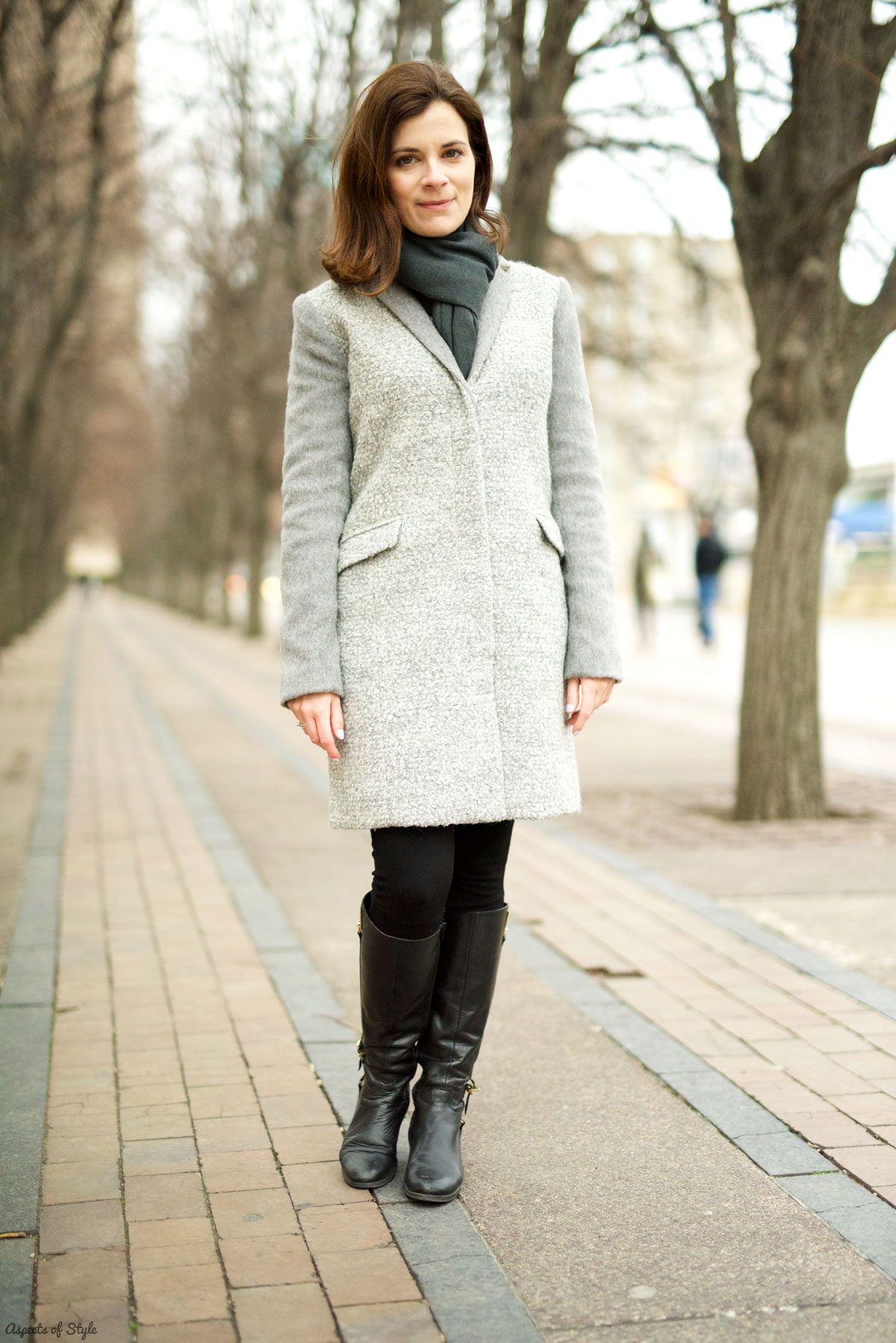 I paired the coat with a pair of black leggings from Bershka and my trusty riding boots from Tsakiris Mallas. In the past I gravitated towards pointy boots with a bit of heel, but during the last two years I couldn’t find any that I liked! So riding boots it is!