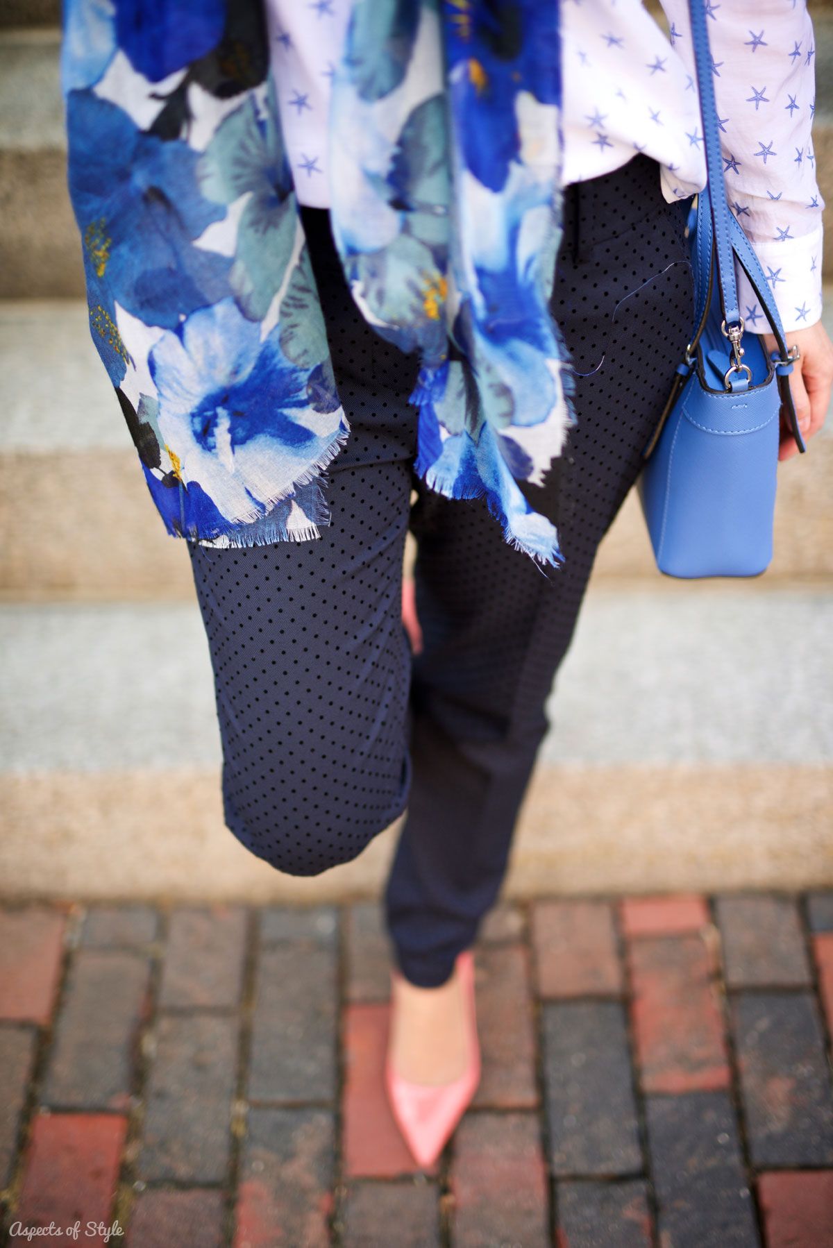 I love that shirt and the combination of all the blues (one of my favorite colors when it comes to clothing)! I haven’t really taken my spring clothes out yet. Hopefully by the end of the month! đ