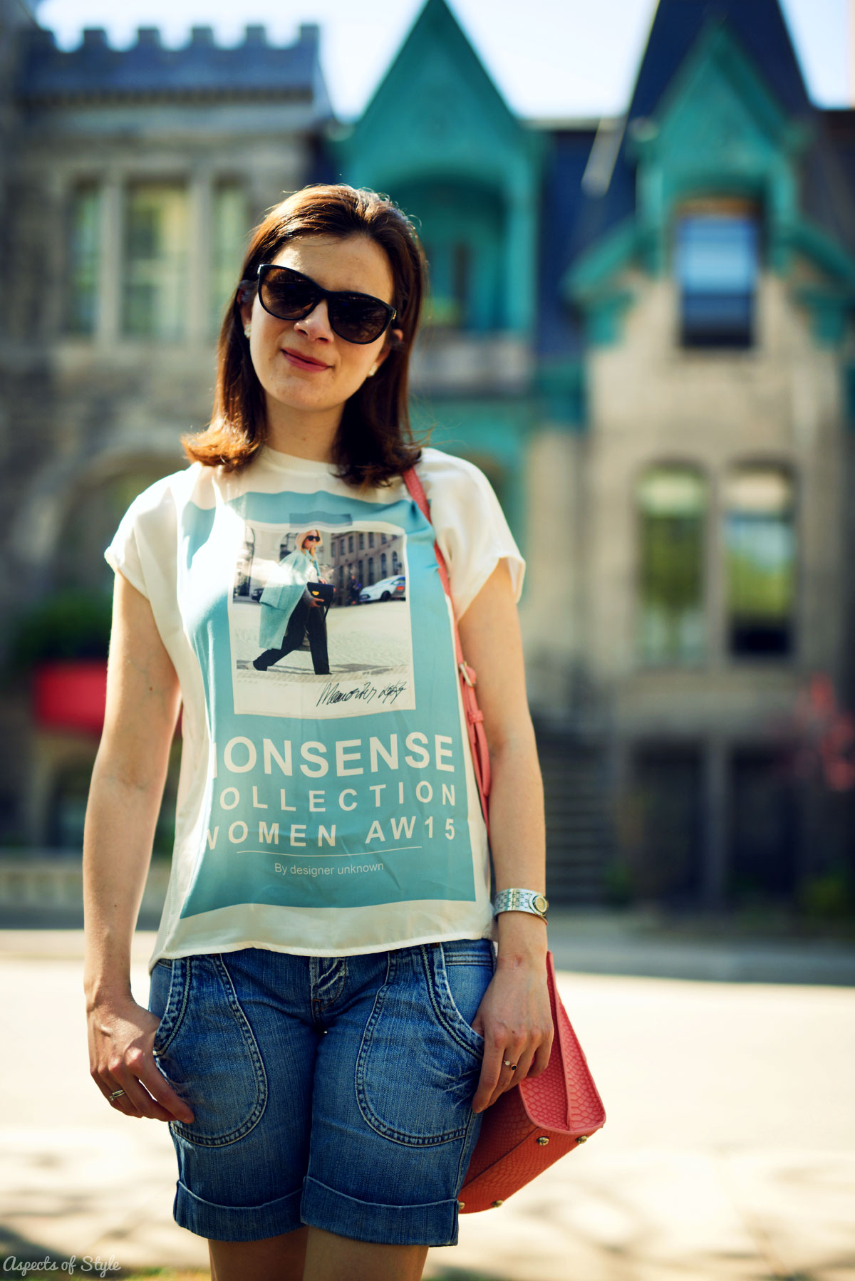 When Iâm out and about sightseeing I like to be comfortable, so denim shorts + t-shirts is my go to combination! I always strive for a cross body bag when Iâm travelling, because I want to have my hands free and keep my belongings close to me! This Nine West bag is my latest favorite as it is just the right size for me and keeps all essentials!