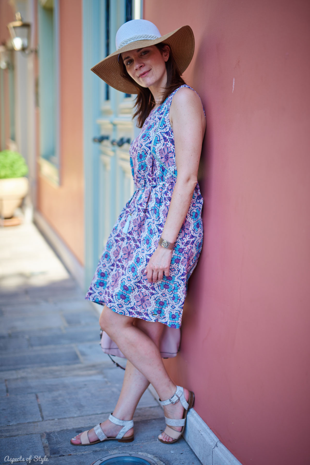Last week my husband and I went on a day trip to Nafplio to meet with friends It was hot and sunny so I opted for a light sun dress and my trusted floppy hat!