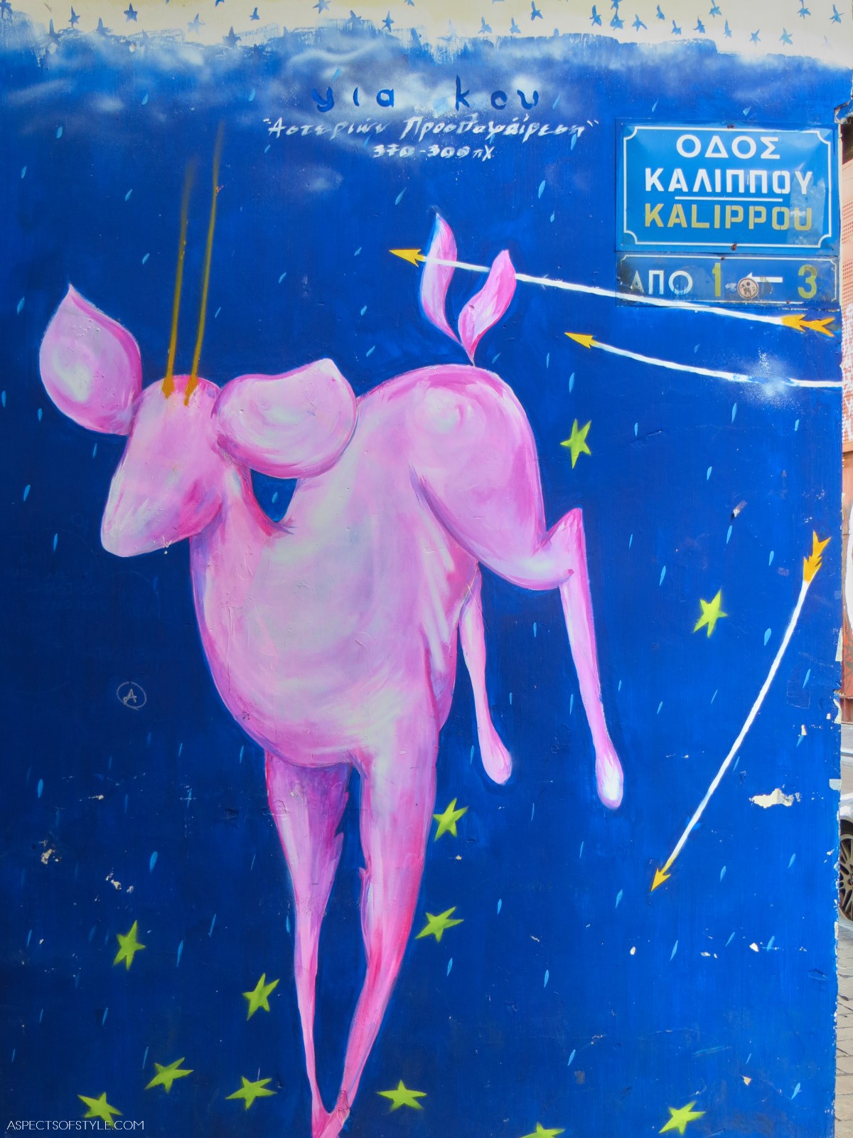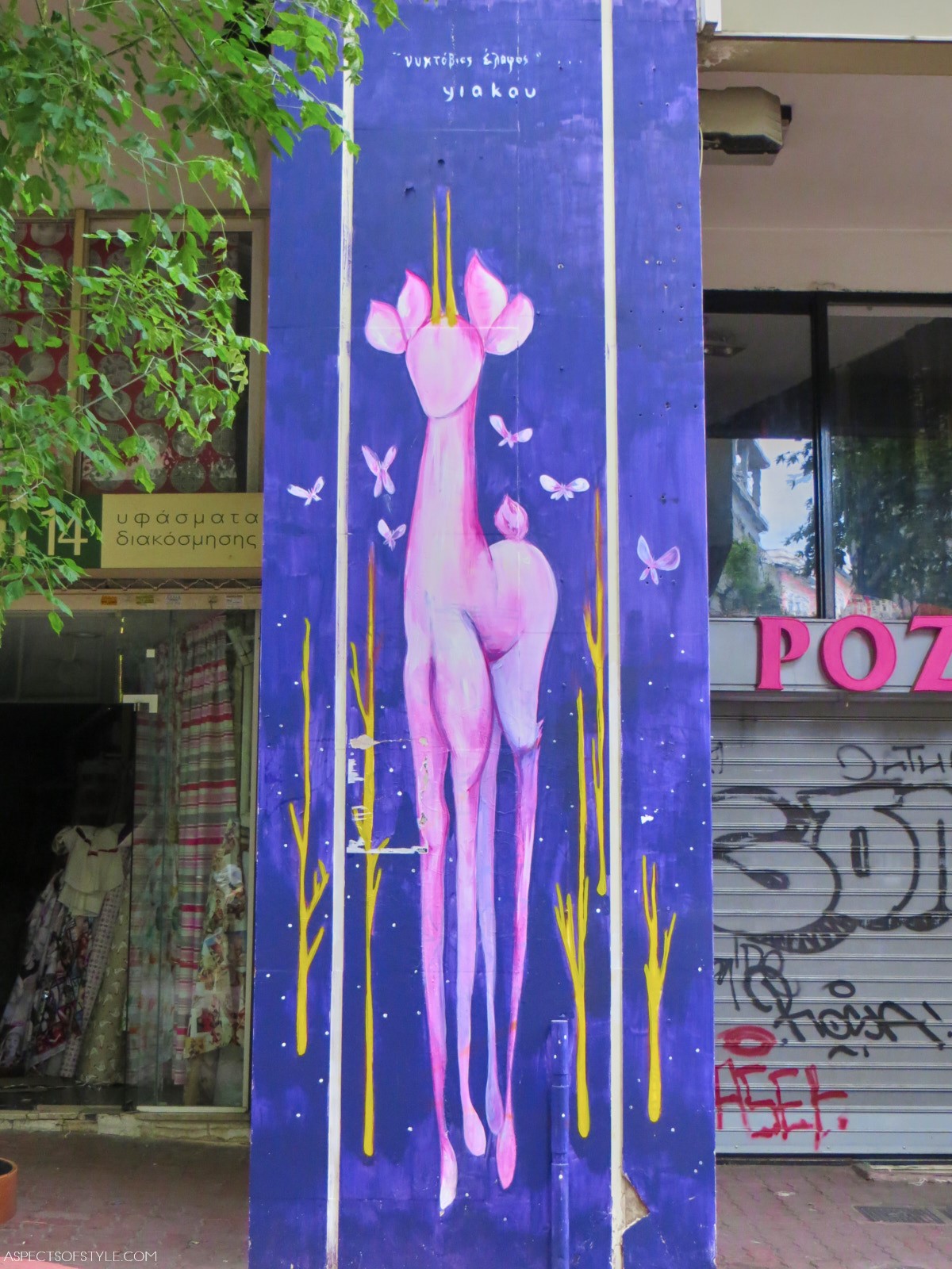 The first one I noticed was Yiakou, who at created ethereal and powerful female figures. Unfortunately some of my favorite creations were covered up by posters or painted and became store window displays. Last year I noticed his new creations: pinkish deer that sprung out of fairy tales (the photos featured in this post).You can find some of Yiakouâs creations in Ermou (in the corner with Kallipou street), Athinas, Kalamiotou and Evripidou streets.