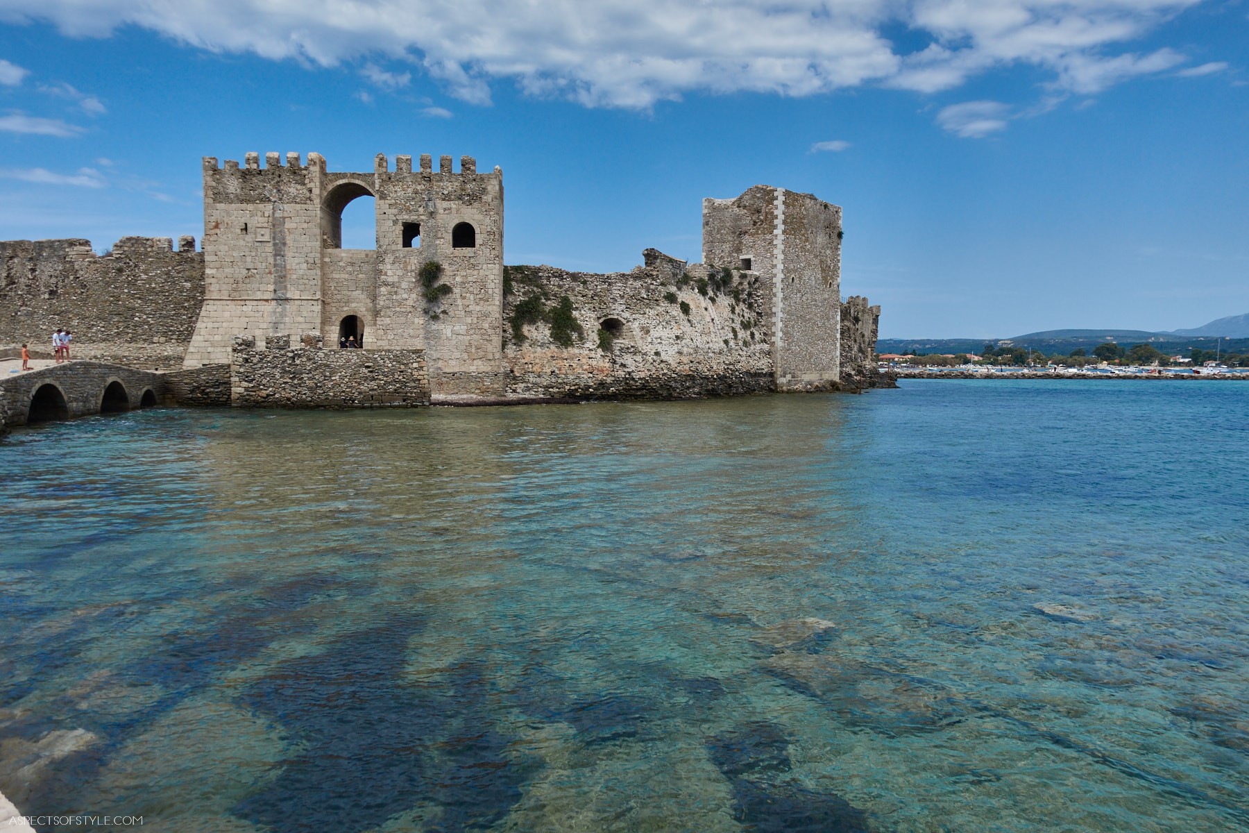 Our next stop was Methoni, where our visit was all about exploring the castle, which for me is the most interesting castle in Peloponnese. I particularly liked the walk towards the small fort that it’s located outside the main castle and you get there via a stone bridge (pictured in the first photo of the post). It’s probably the most picturesque part of the city which is very Instagram and Pinterest worthy!!