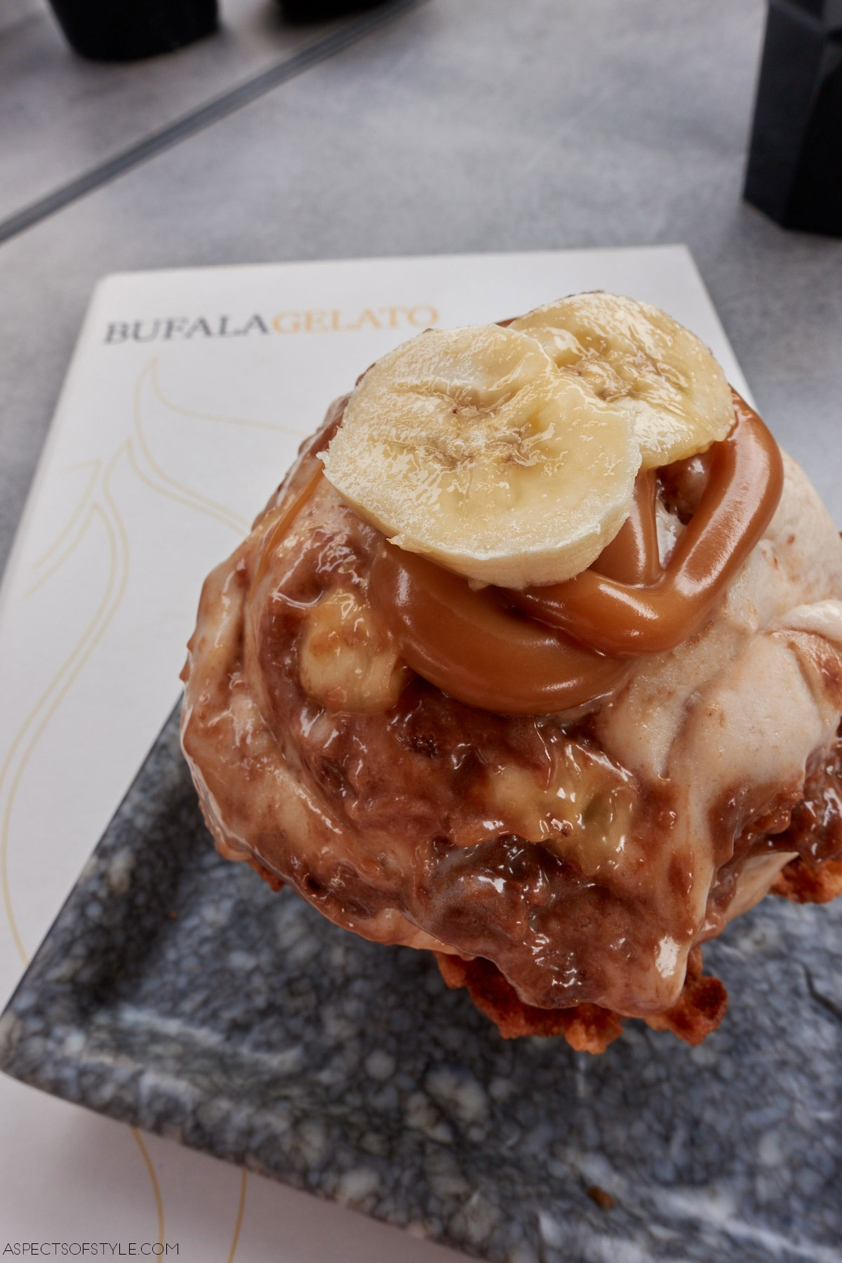 Bufala Gelato is the new entry in Vouliagmeni. Its gelato range includes flavors made from cow milk and buffalo milk. They also have a cold stone, where you can mix any flavor with various fillings! If you have visited the US, you’ve probably heard of Coldstone Creamery! What drew my eye was the bubble waffle which is popular in SE Asia and Japan. So I went for a bubble waffle (they call it Buffle cone) with a cold stone ice cream flavor.