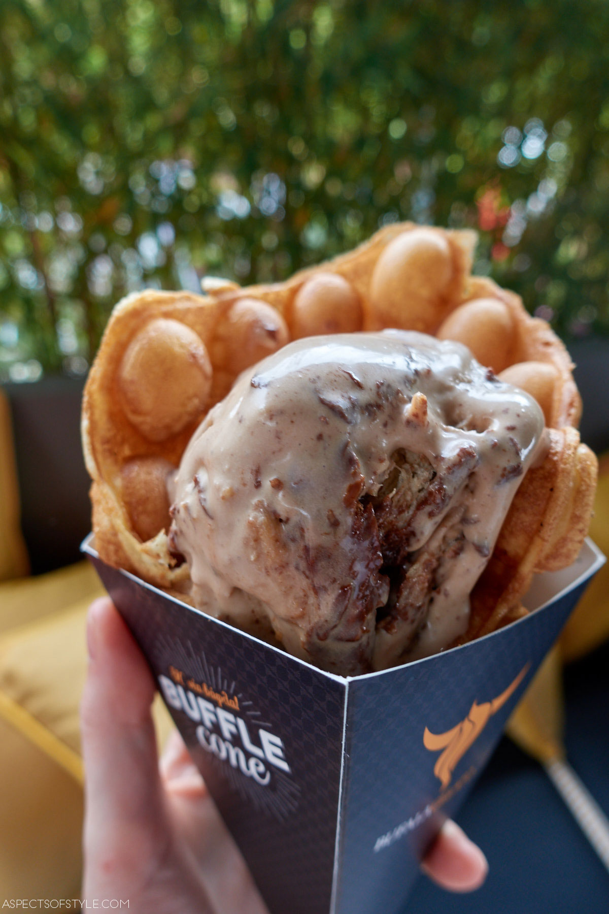 I particularly liked that the buffle waffle cone is smaller than the usual waffles. The taste is different though as it contains more eggs. The original bubble waffle from Asia is called egg waffle after all!