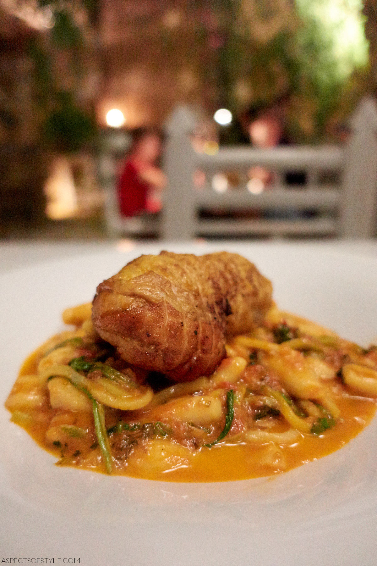 Mazi is located in a beautiful yard, which is actually the ruins of an industrial building. I got the rooster with chylopites (a kind of noodle), which was delicious.