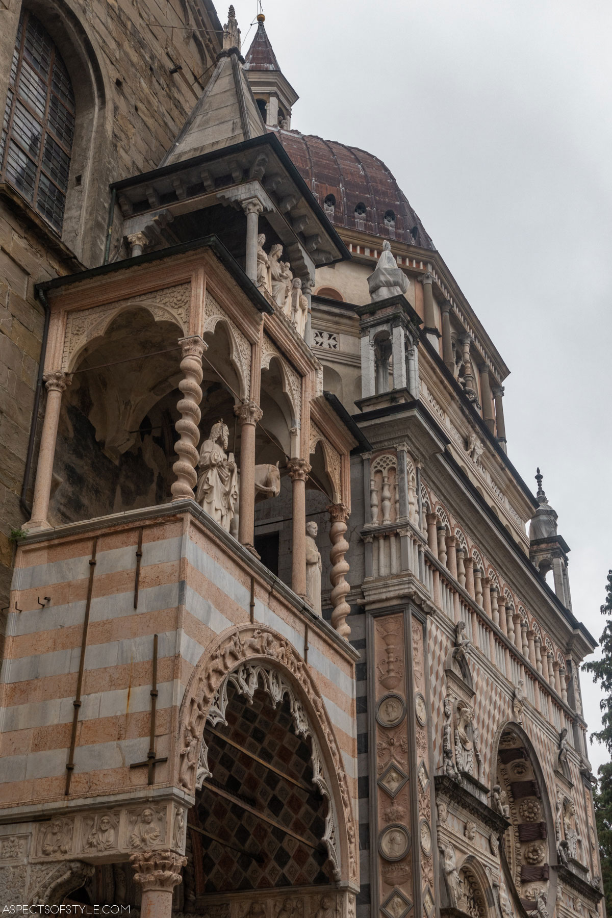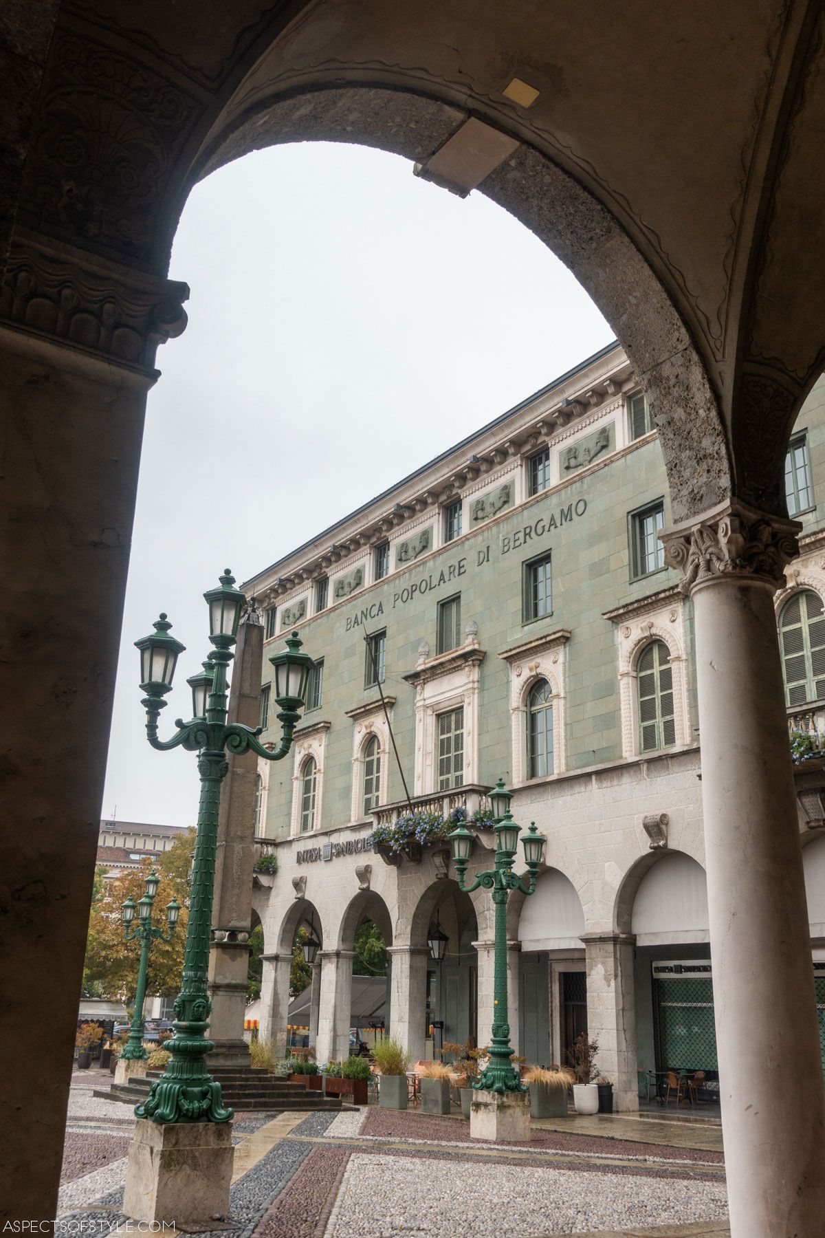 The last day of our trip was moody and rainy. We had umbrellas but it wasn’t easy moving around so we didn’t explore the city as much as we wanted. Our first stop was the old town on the hill: CittĂ Alta. There are a few ways of getting up there: funicular, bus and stairs. We took the latter and entered CittĂ Alta from San Giacomo Gate.