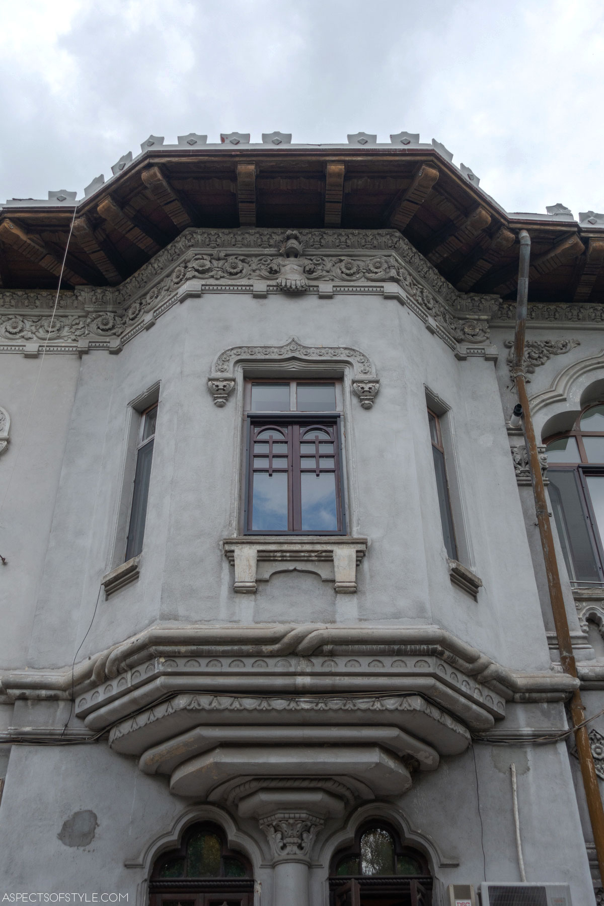 The street behind has many restaurants and cafes. If you walk to the corner Nicolae Golescu and C.A. Rosetti streets, you will see a beautiful building. It’s architectural style is Brâncovenesc style. This style is also known as Romanian Renaissance. It incorporates elements from Byzantine, Ottoman, and late Renaissance architecture. Too bad that the building is full of graffiti.
