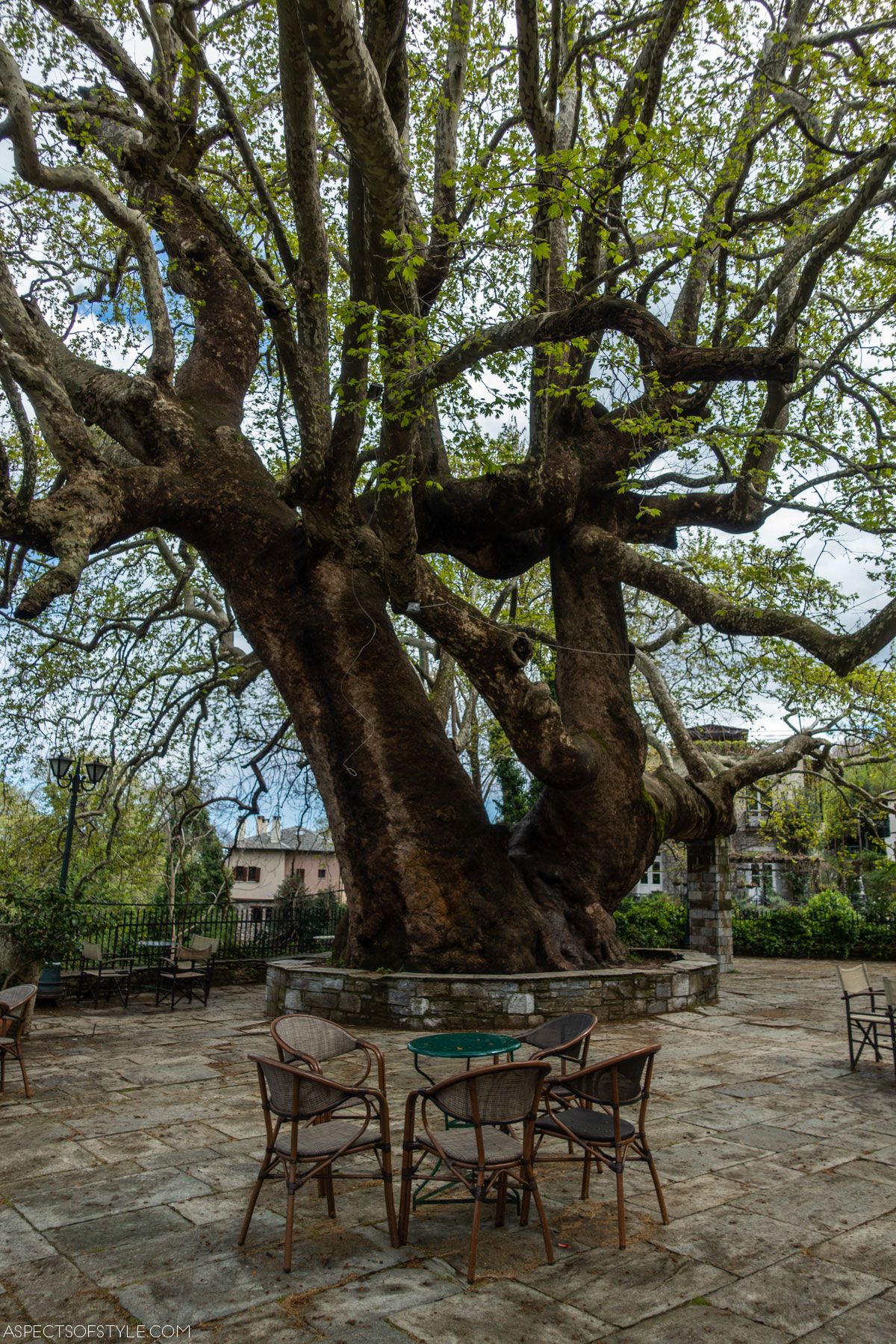 Iâve visited Pelion many times, but this was my first one in Tsagarada. Tsagarada is located in the east part of the mountain facing the Aegean Sea. It is a long village divided into different neighborhoods. If you follow the Google Maps directions youâre going to find yourself in Aghia Paraskevi square. There, next to the church, is a 1000-year-old plane tree. The square is very picturesque and you can walk around the village.