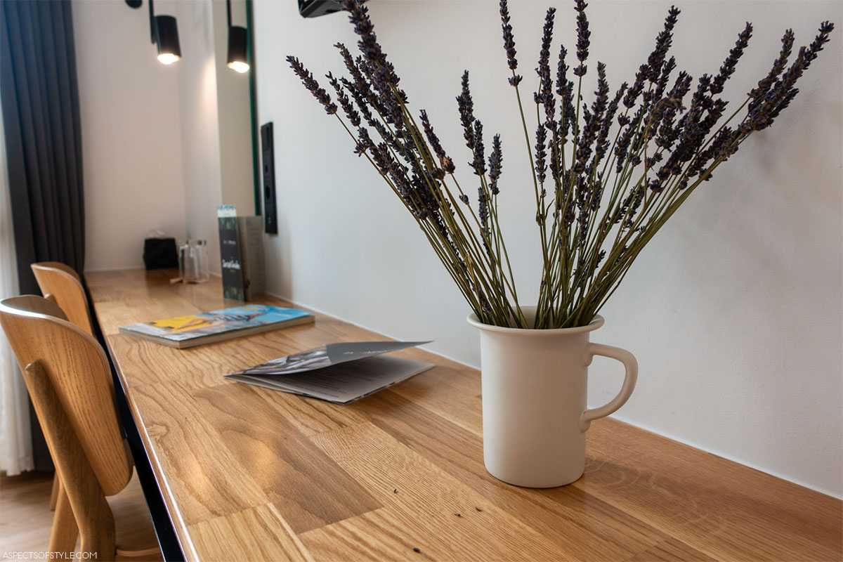The ground floor hosts the colorful lobby designed by artist b., which doubles as the reception and bar area. With 200 rooms, this 3-star hotel offers compact but efficiently designed spaces. Instead of traditional wardrobes, you’ll find open metal rails and hangers, maximizing functionality.