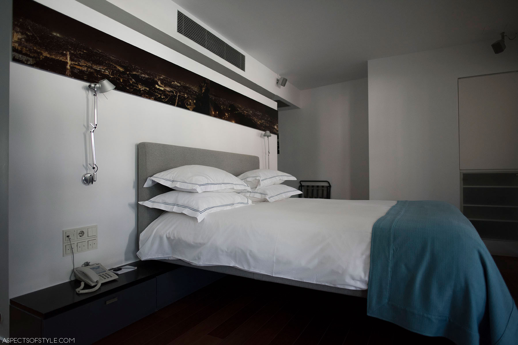 At street level, it appears to be a stylish mattress store — but upstairs you’ll find a minimalist design hotel. We visited the “Boulevard” rooms overlooking Patriarchou Ioakeim Street, and I especially loved the crisp white bathroom tiles and the numbered light fixtures. It’s an excellent option if you’re looking for a calm, central stay in Kolonaki.